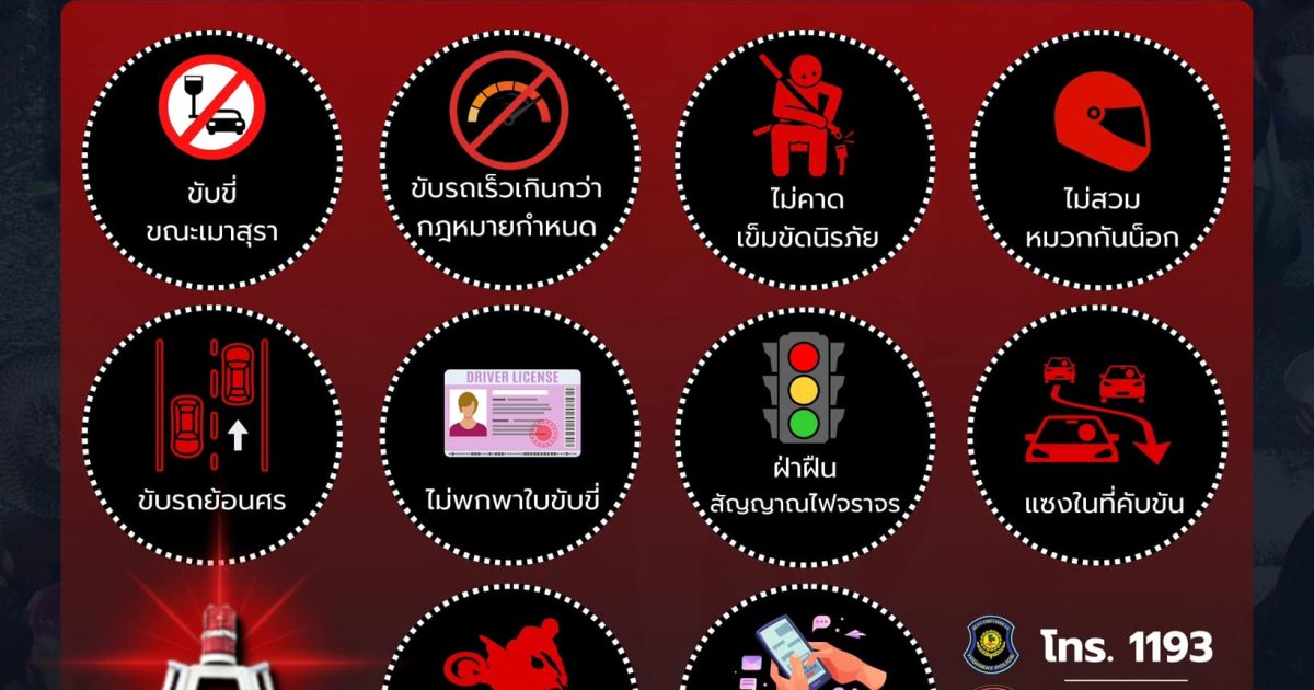 ตำรวจบังคับใช้กฎหมาย 10 ข้อหาหลัก เพื่อลดความเสี่ยงปัจจัยของอุบัติเหตุที่ทำให้เกิดการสูญเสียในช่วงเทศกาลสงกรานต์ 2568
