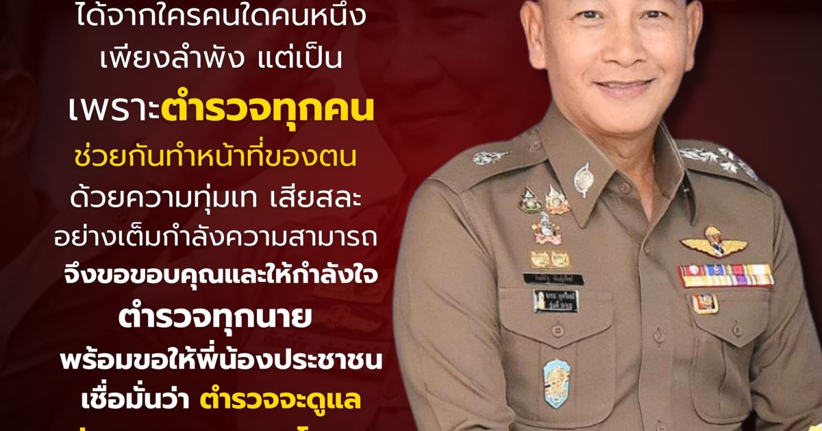 “ขอขอบคุณตำรวจทุกนายทั่วประเทศ ที่ร่วมแรงร่วมใจปฏิบัติหน้าที่ ดูแลความปลอดภัยและอำนวยความสะดวกการจราจรช่วงเทศกาลสงกรานต์ที่ผ่านมาอย่างเต็มกำลัง ทำให้ผลการปฏิบัติในภาพรวมเป็นที่น่าพอใจ”