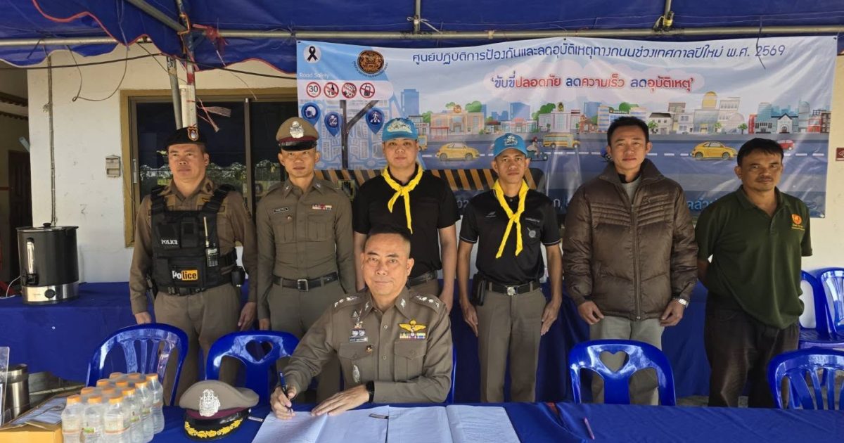 วันนี้ 5 ม.ค.69 เวลา 09.00 น. พ.ต.อ.สมพงษ์ บุญมาประเสริฐ รอง ผบก.ภ.จว.ลำปาง ได้มาตรวจเยี่ยมจุดตรวจร่วมบูรณาการ ช่วงเทศกาลปีใหม่ พ.ศ.2569 จุดตรวจหน้า หน้าสถานีตำรวจภูธรห้างฉัตร ต.เวียงตาล (ถนนเชียงใหม่-ลำปาง) พบ ร.ต.ต.โกศัลย์ แก้วธิดา รอง สว.ป.(ร้อยเวร20) พร้อมด้วยข้าราชการตำรวจ สภ.ห้างฉัตร ,อปพร. อยู่ปฎิบัติหน้าที่ รายงานเหตุการณ์ปกติ