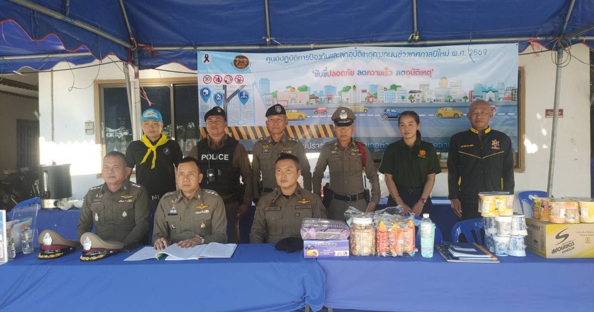 วันนี้ 1 ม.ค. 69 เวลา 13.30 น. พ.ต.อ.อัครินทร์ กาสา รอง ผบก.ภ.จว.ลำปาง มาตรวจเยี่ยมจุดตรวจร่วมบูรณาการ ช่วงเทศกาลปีใหม่ พ.ศ.2569 ณ จุดตรวจร่วมบูรณาการ หน้า สภ.ห้างฉัตร พบ พ.ต.อ.ประภาส อุบลศรี ผกก.สภ.ห้างฉัตร พร้อมด้วยข้าราชการตำรวจ สภ.ห้างฉัตร, เจ้าหน้าที่สาธารณสุข, กำนัน ผู้ใหญ่บ้าน, เจ้าหน้าที่ฝ่ายปกครอง และ อปพร. อยู่ปฎิบัติหน้าที่ รายงานเหตุการณ์ปกติ