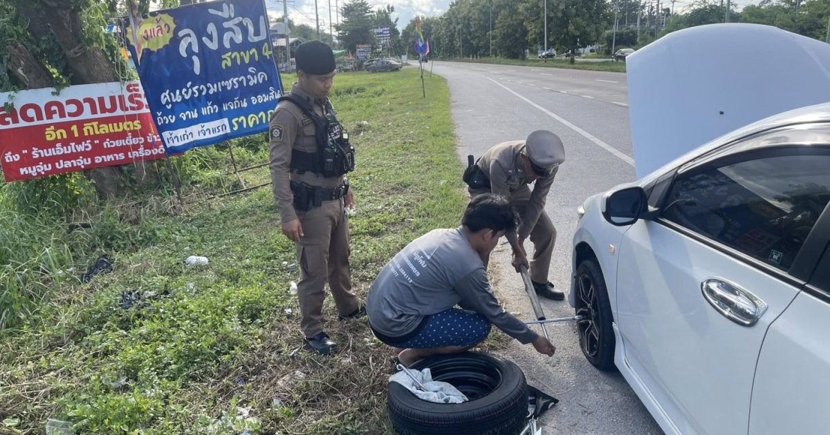 วันนี้ 9ส.ค. 2568 เวลา 17.00น. ร.ต.ท สุทัศน์ พันธิรัตน์ รองสว. (ป). ปฏิบัติหน้าที่ร้อยเวร 20 สายตรวจรถยนต์ 201 สายตรวจรถจักรยานยนต์ ได้ออก ว.4 เหตุประชาชนขอความช่วยเหลือรถยนต์ยางแตก บริเวณ ตรงข้ามร้านอินทราเอาท์เลท ถนนลำปาง-เชียงใหม่ขาขึ้น ได้ให้การช่วยเหลือเปลี่ยนยางอะไหล่ให้เรียบร้อย สามารถเดินทางต่อไปได้
