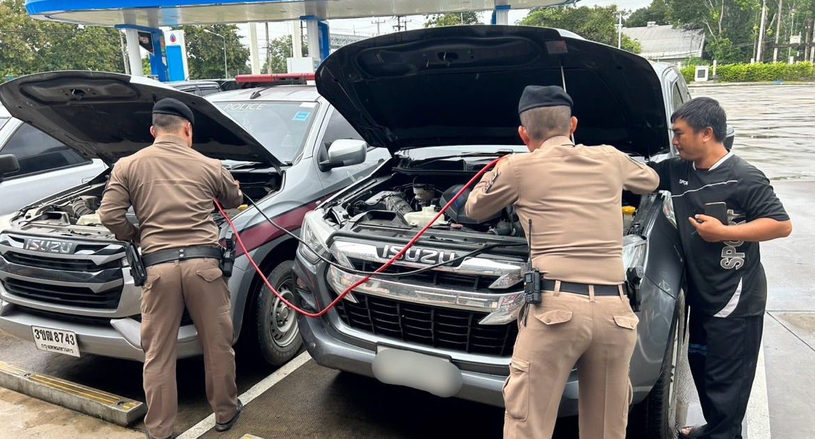 ร.ต.ท.วีรยุทธ ถนอมชาติ รอง สว.(ป.)ฯ ร้อยเวร 20 ด.ต.พิทักษ์ สมกุล ผบ.หมู่.ป. ส.ต.ท.นันทวัฒน์ หม่องธรรม ผบ.หมู่ ป. สายตรวจรถยนต์ 201 สายตรวจรถจักรยานยนต์ ว.4 ตามรับแจ้ง ประชาชนขอความช่วยเหลือรถยนต์กระบะสตาร์ทไม่ติด บริเวณภายในปั๊มน้ำมัน ปตท. ม.ธรรมศาสตร์ ดำเนินการพ่วงแบตเตอรี่ให้เรียบร้อย สามารถเดินทางต่อไปได้