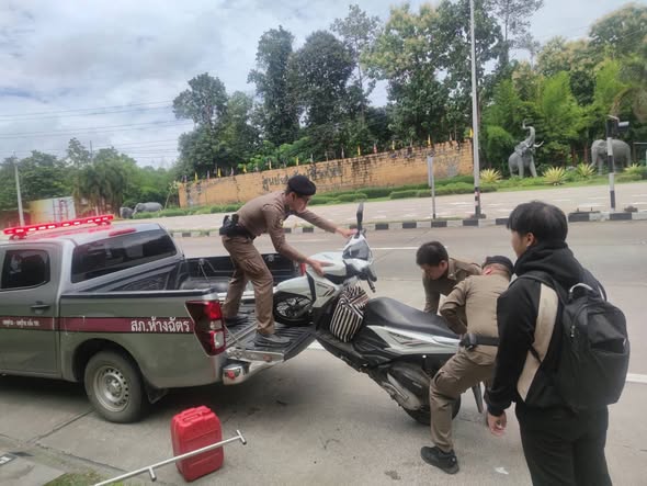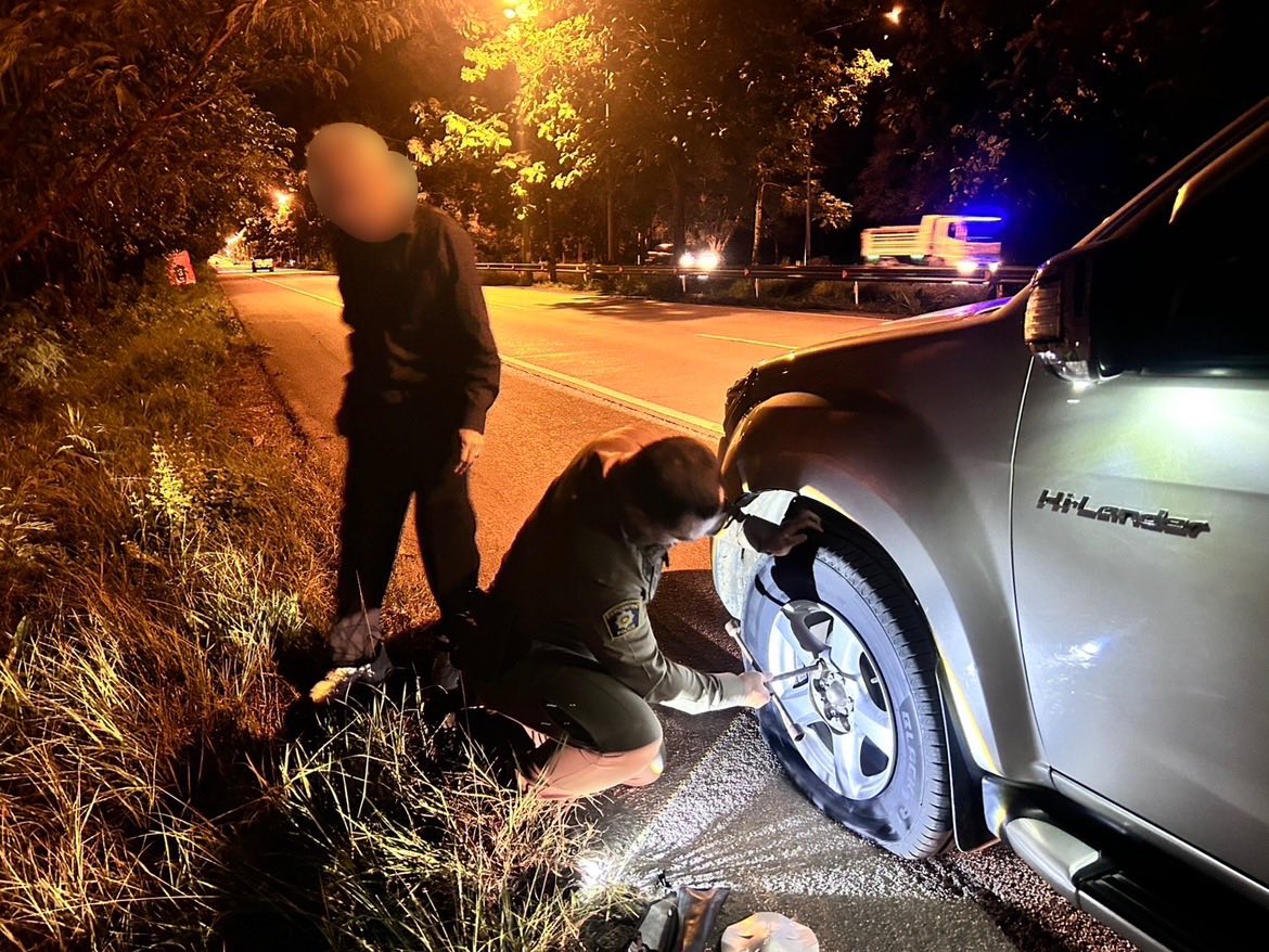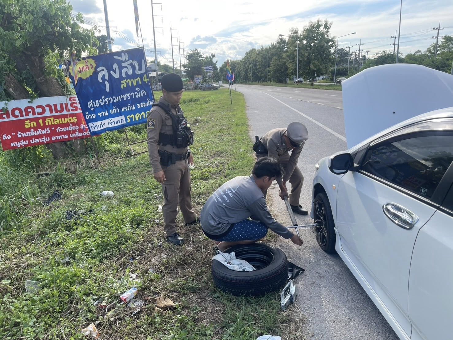 สายตรวจรถยนต์ 201 สายตรวจรถจักรยานยนต์ ว.4 ตามรับแจ้ง ประชาชนขอความช่วยเหลือรถยนต์กระบะยางแตก